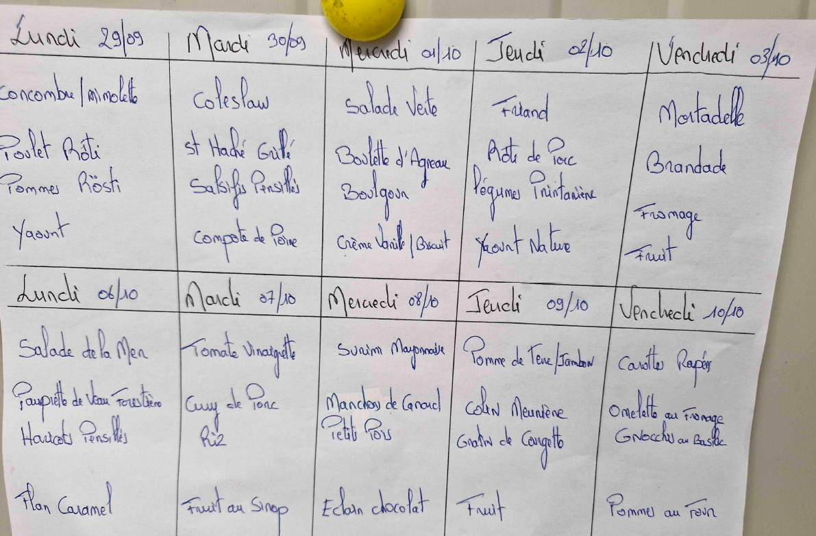 - Une majorité de plats cuisinés avec des produits frais, de saison et dont l’origine locale est favorisée.